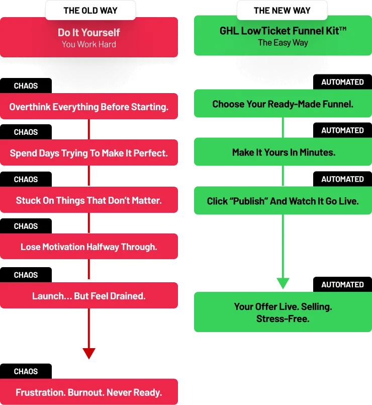 You’ll get immediate access to the GHL Low Ticket Funnel Kit™, featuring 12 "plug-and-play" GoHighLevel funnels. We’ve also included a mini-training series to help you customize and launch in under 24 hours, along with bonus Canva templates and mockups to ensure your offer looks high-end right out of the gate.